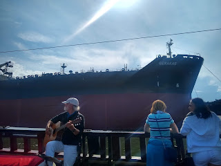 This trip, we stopped and just sat in the water for a while (probably because the drawbridge wasn't yet scheduled to open for us). A man sat and played music for us, which did help a bit.